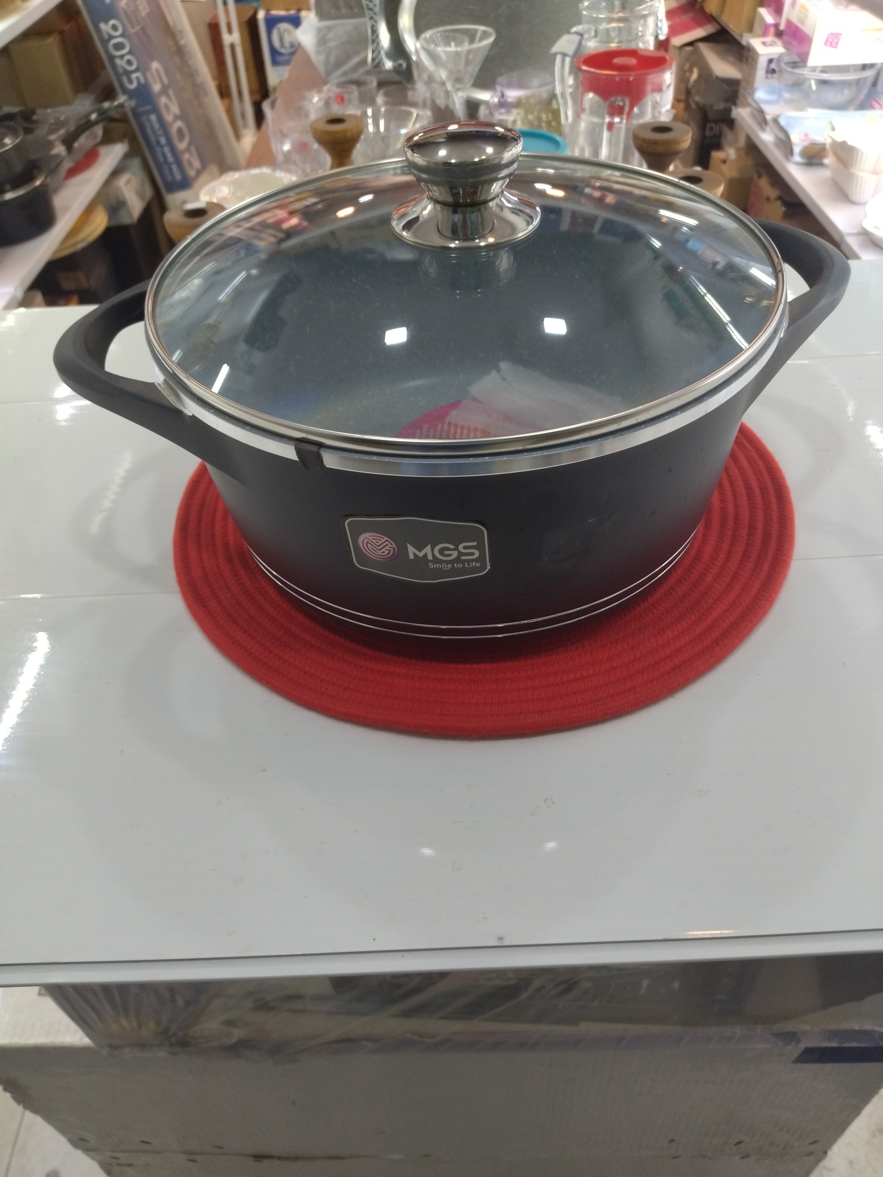 ویژگی ها برند : MGS نوع محصول : قابلمه گرانیت روش ساخت : دایکست (ریخته گری ) جنس بدنه : آلومینیوم دایکست درجه یک. موارد استفاده : قابل استفاده در انواع اجاق گاز. و فر( حد اکثر تا دمای ۳۰۰ درجه سانتیگراد ).
