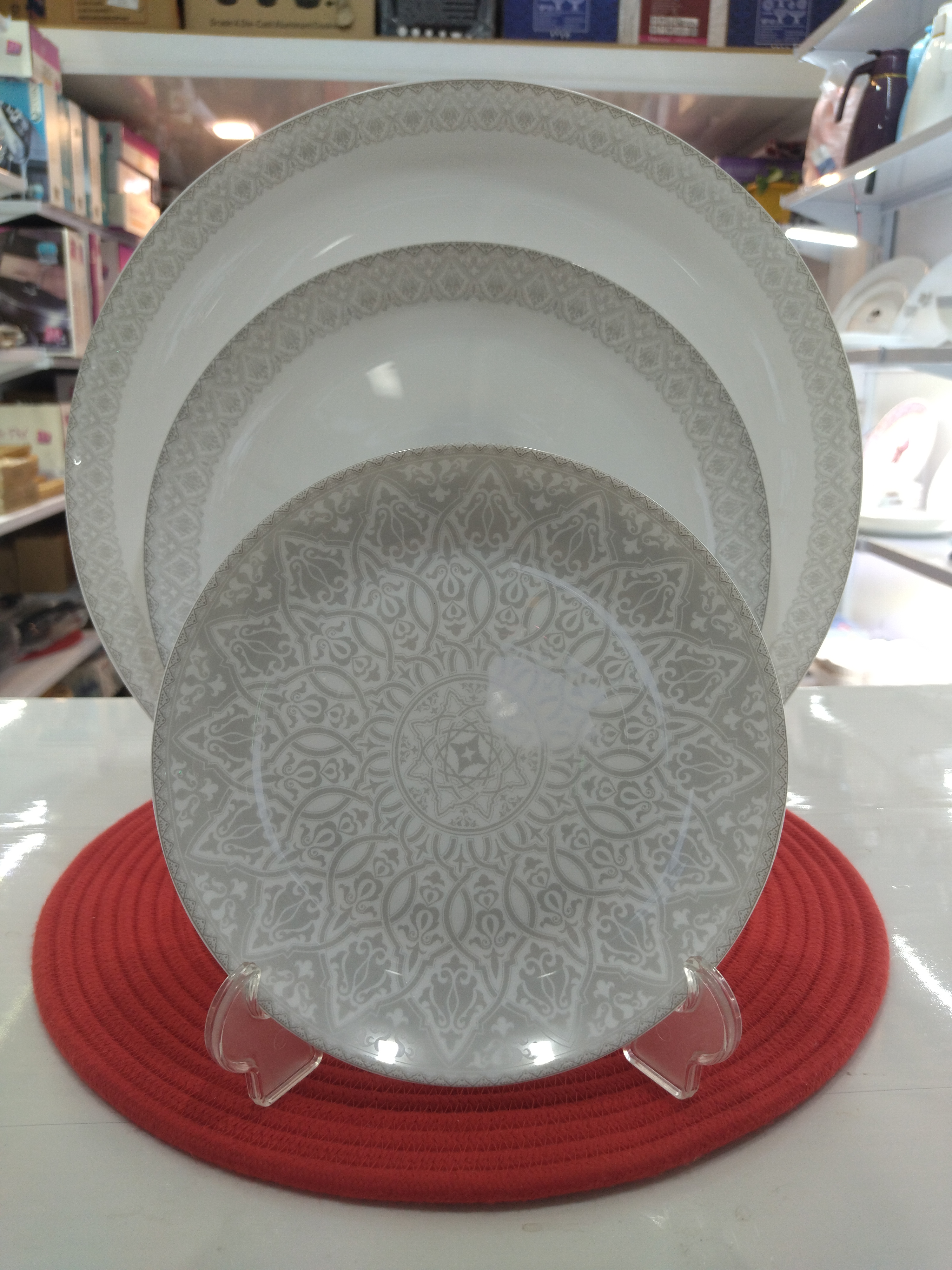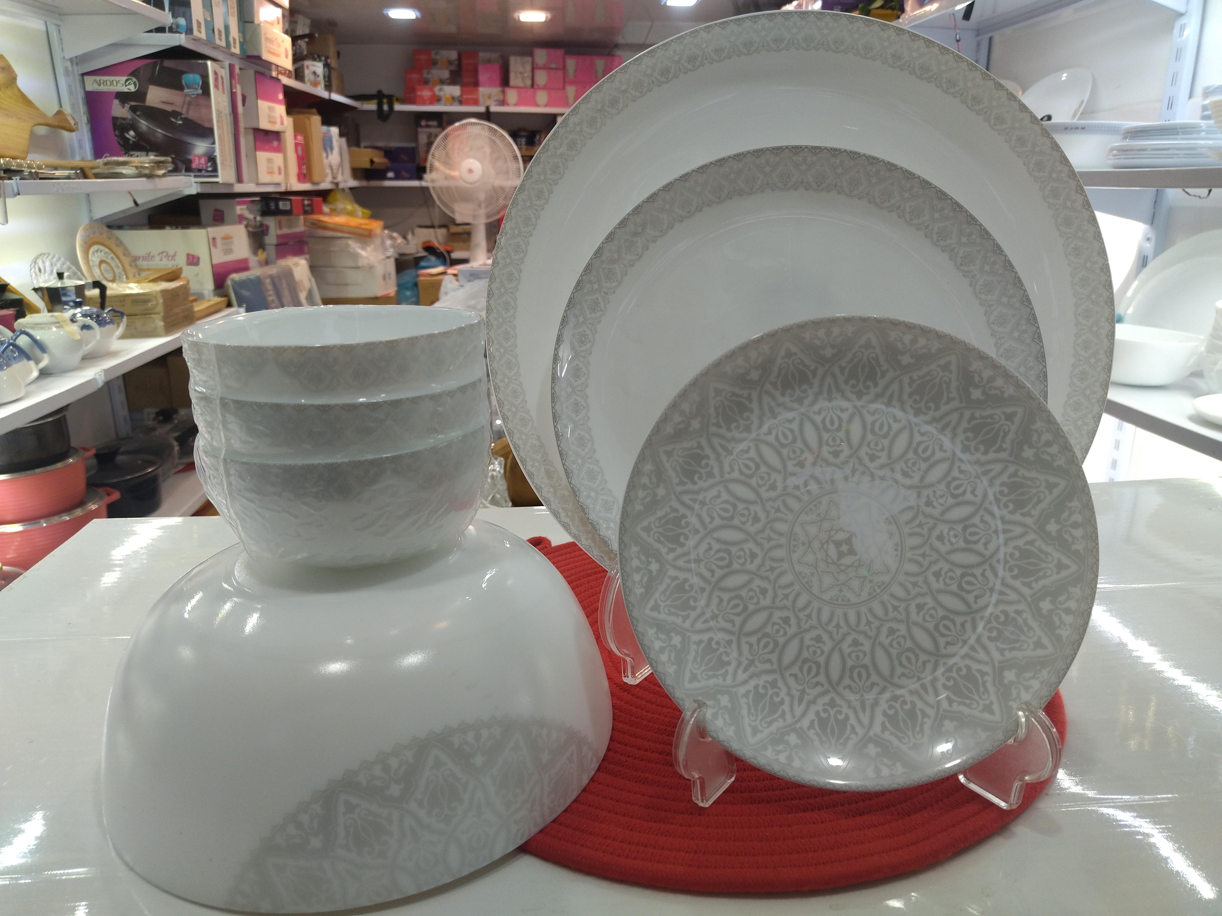 ویژگی ها                       برند:گلدن اپال. تعداد پارچه : ۲۶پارچه . تعداد نفرات: ۶ نفره . اقلام : پلو خوری و خورشت خوری و پیش دستی و پیاله ماست خوری :  از هر کدام  ۶   عدد     کاسه سالاد و دیس پلو : از هر کدام ۱ عدد.  قالب : دیوالی   طرح : آلما طوسی