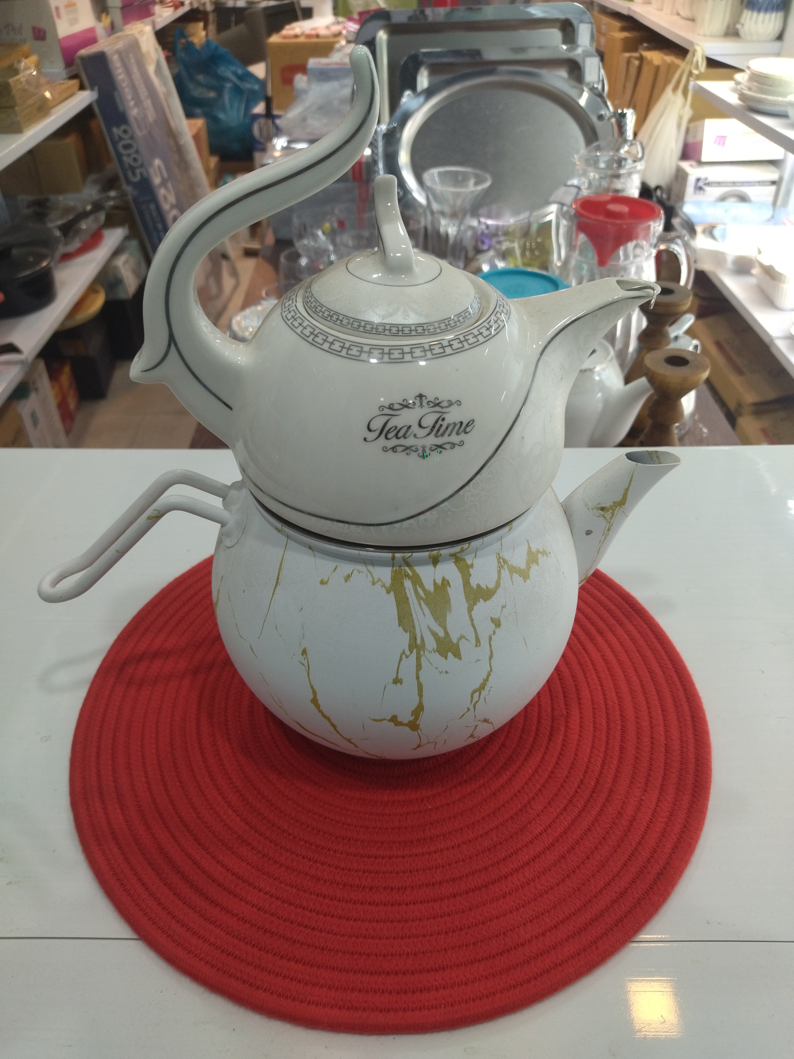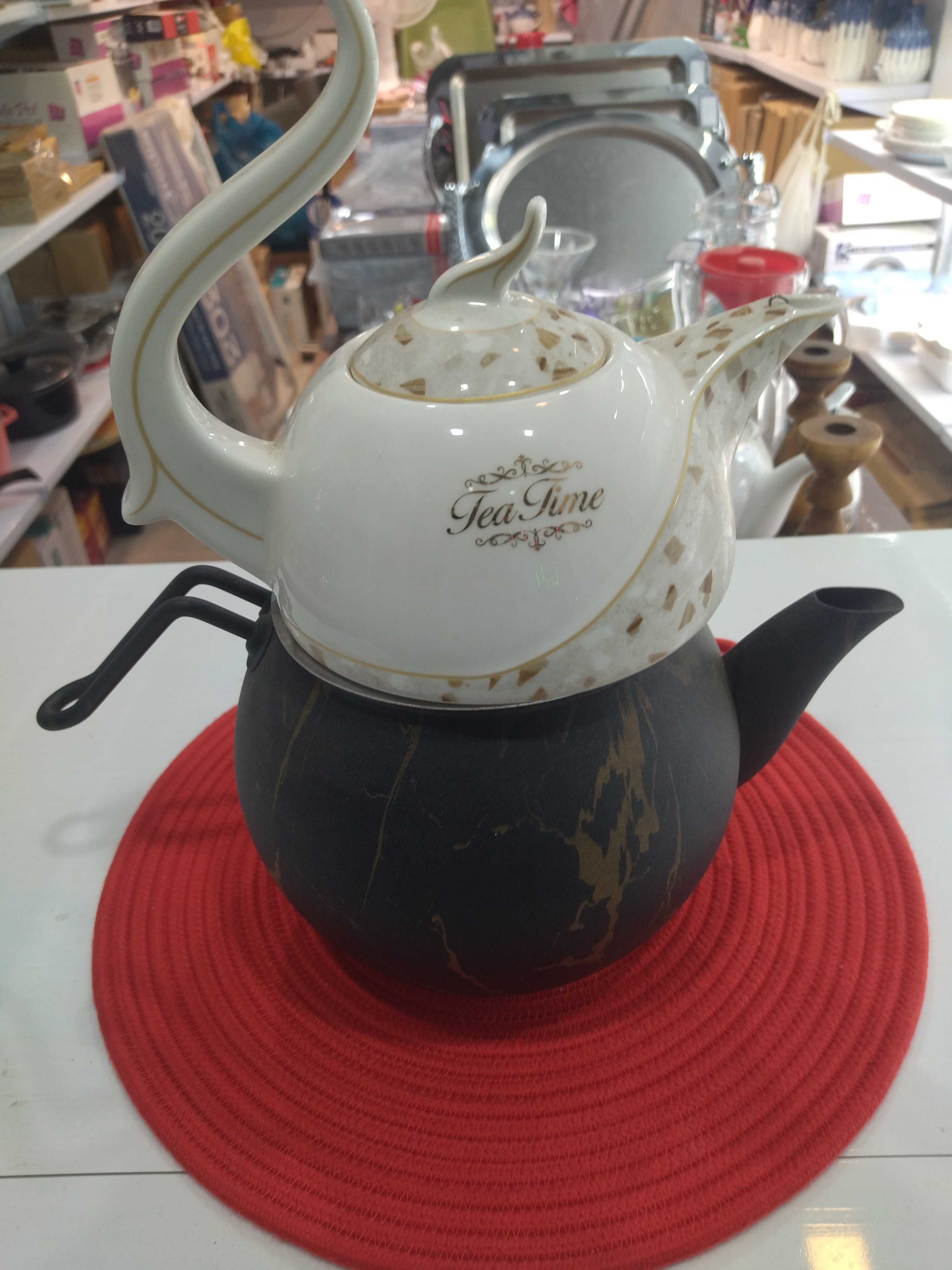 ویژگی های کتری ظرفیت : ۳ لیتر. ضخامت بدنه: ۱ میلی متر رنگ : ماربل مشکی و سفید جنس بدنه : استیل ۳۰۴نسوز و ضد زنگ با پوشش رنگ الکترواستاتیک حرارتی جنس کف : اینداکش (القایی ) جنس دستگیره : تمام استیل با پوشش رنگ الکترواستاتیک حرارتی. ویژگی های قوری جنس بدنه قوری : بن چاینا